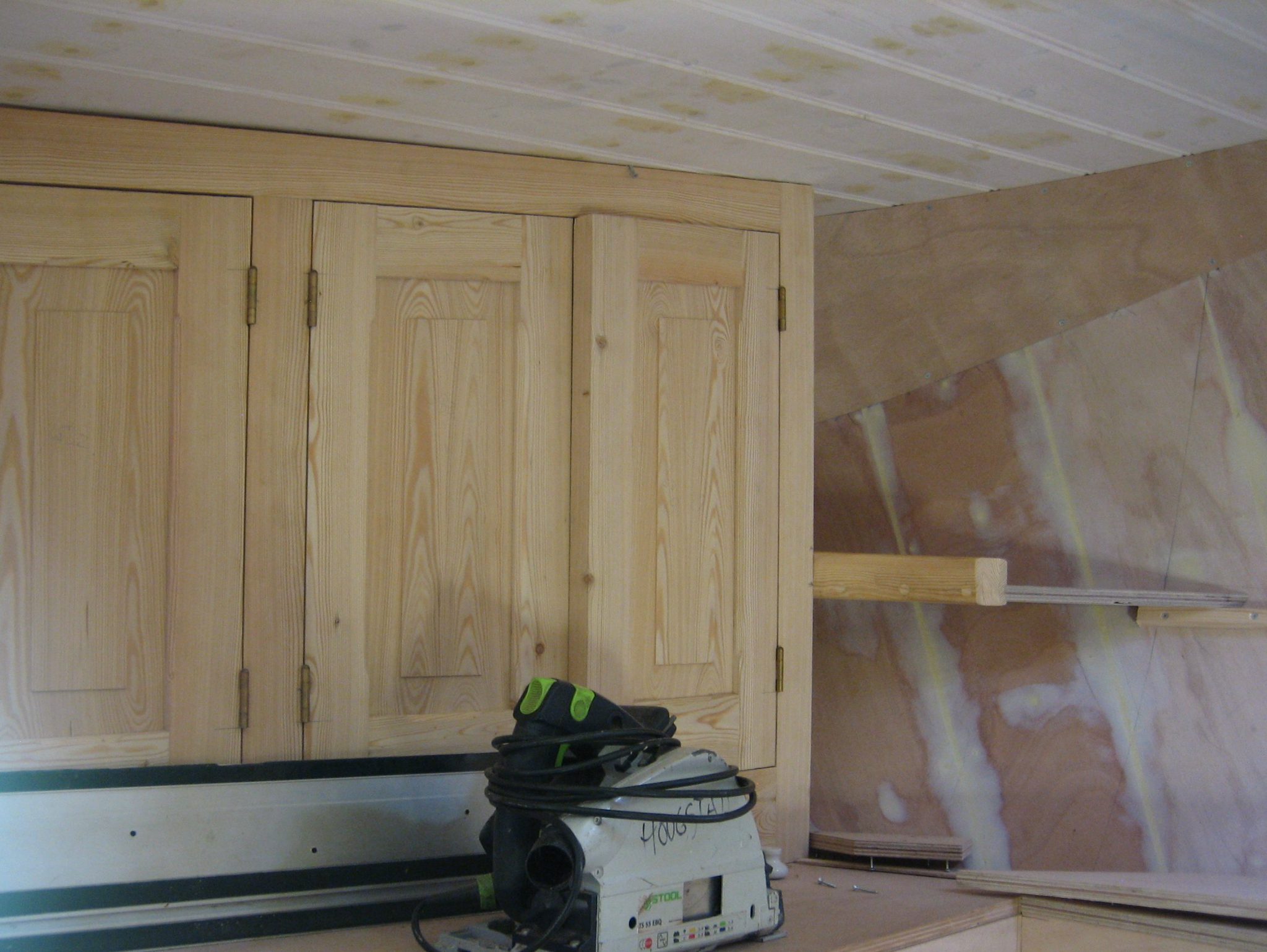 De basis maakten we met moderne materialen: een goede isolatielaag en daarover stroken multiplex die heel precies de vorm van de romp volgen. De lariks fronten en deuren zijn juist helemaal traditioneel en geven de authentieke sfeer. Het resultaat is een geslaagde combinatie van toen en nu.